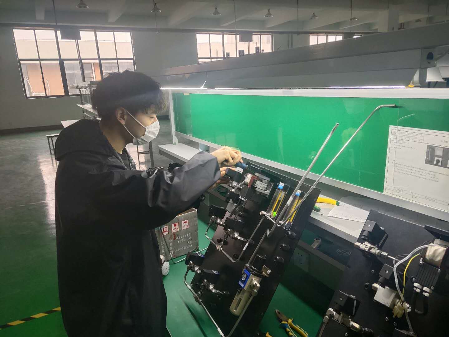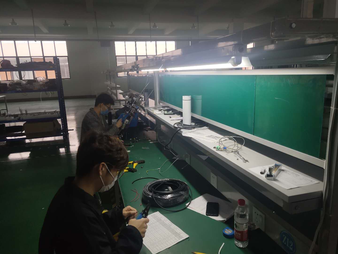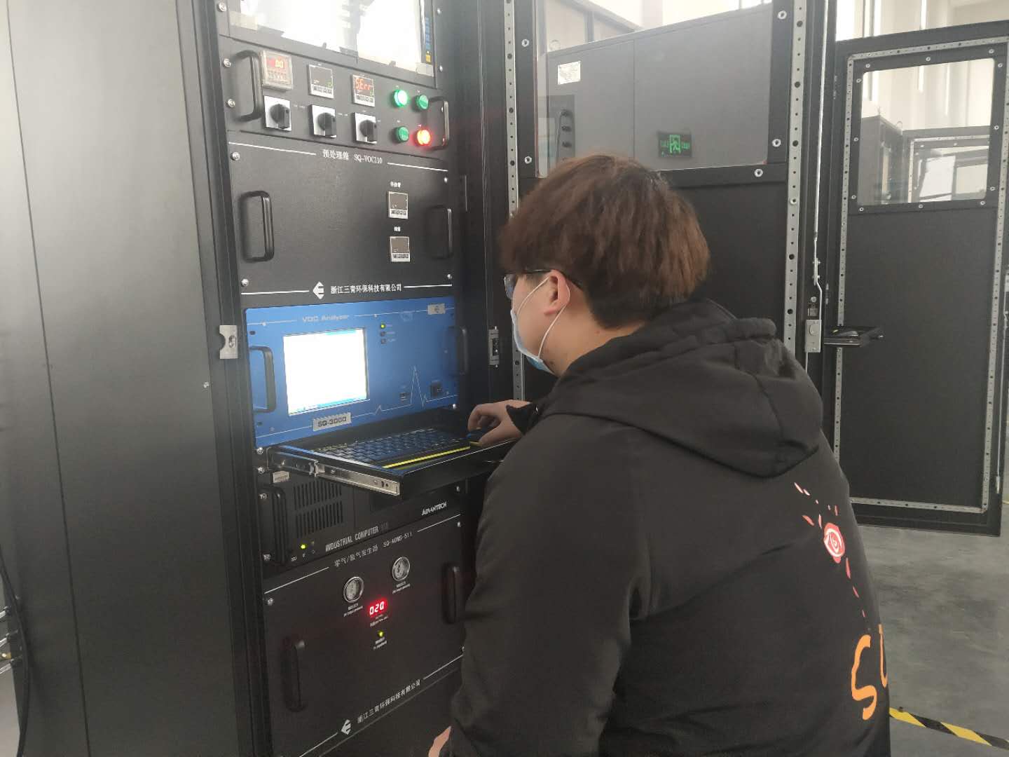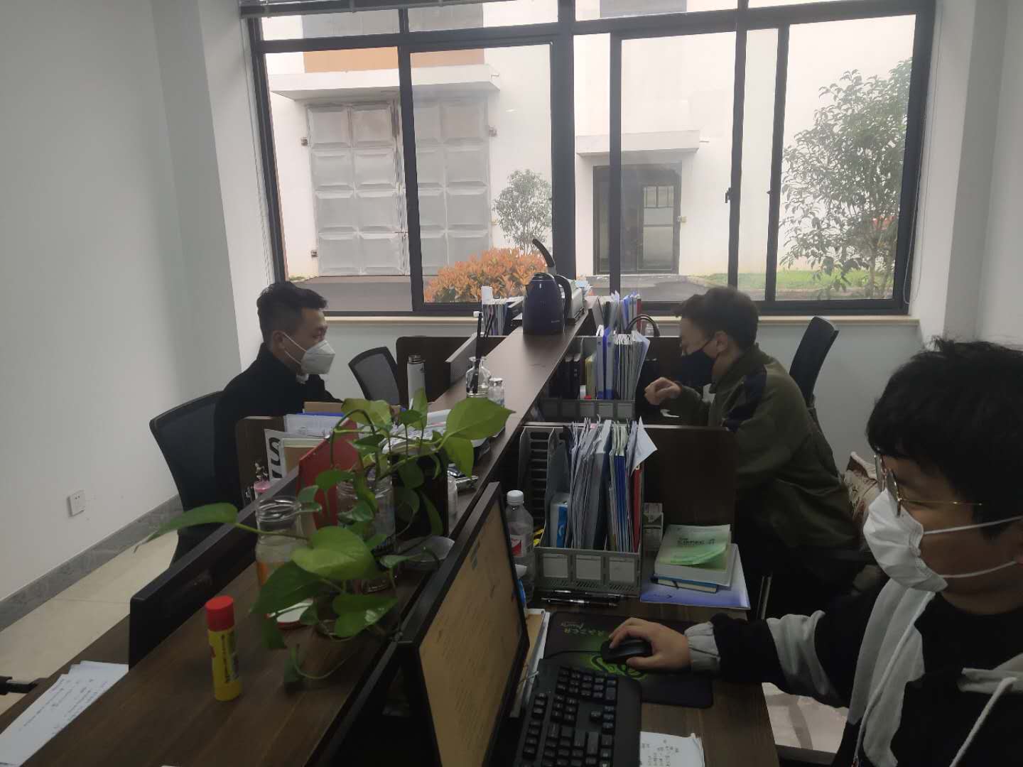 公司員工帶著口罩有序的開展工作。